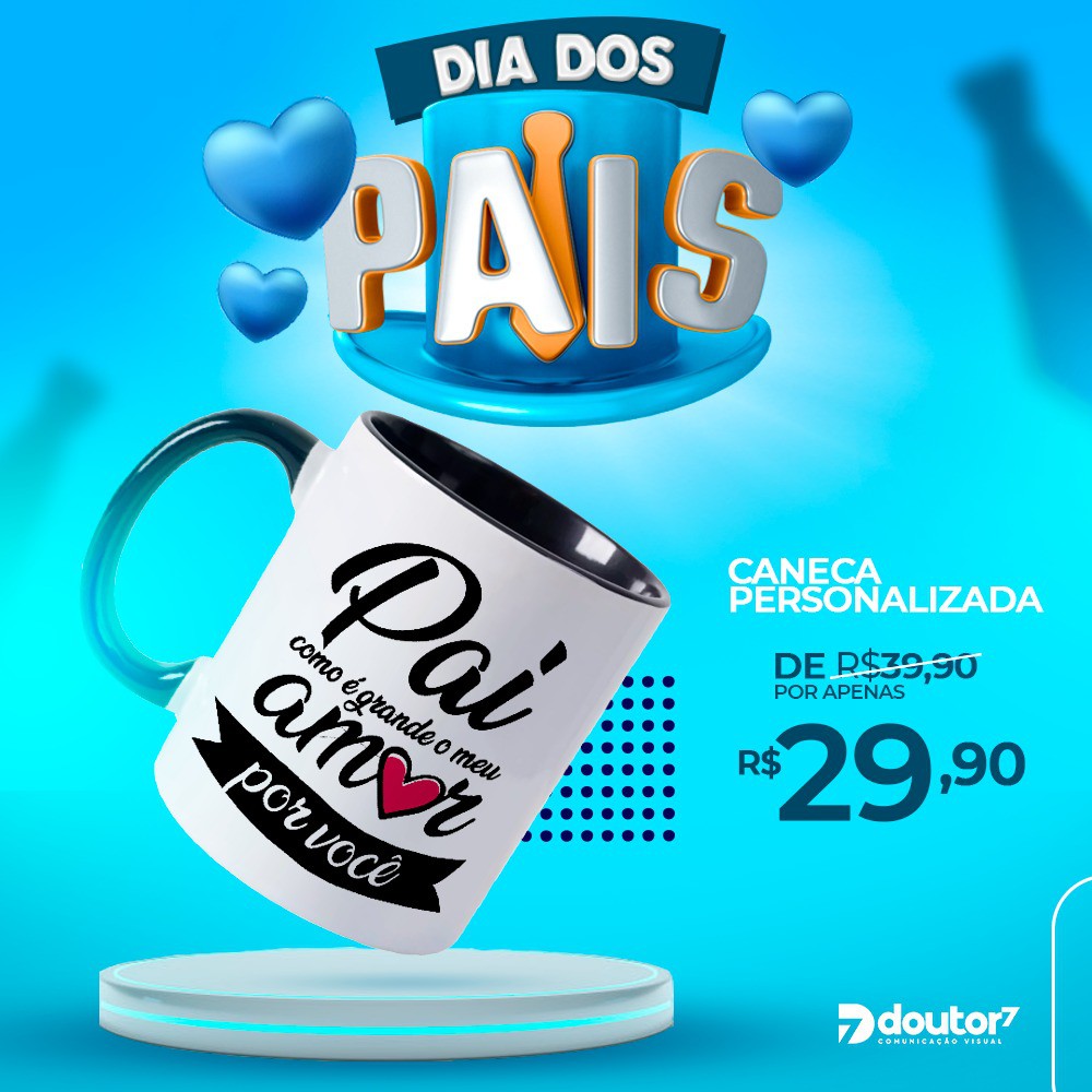 Caneca Branca de porcelana personalizada - Mês dos Pais